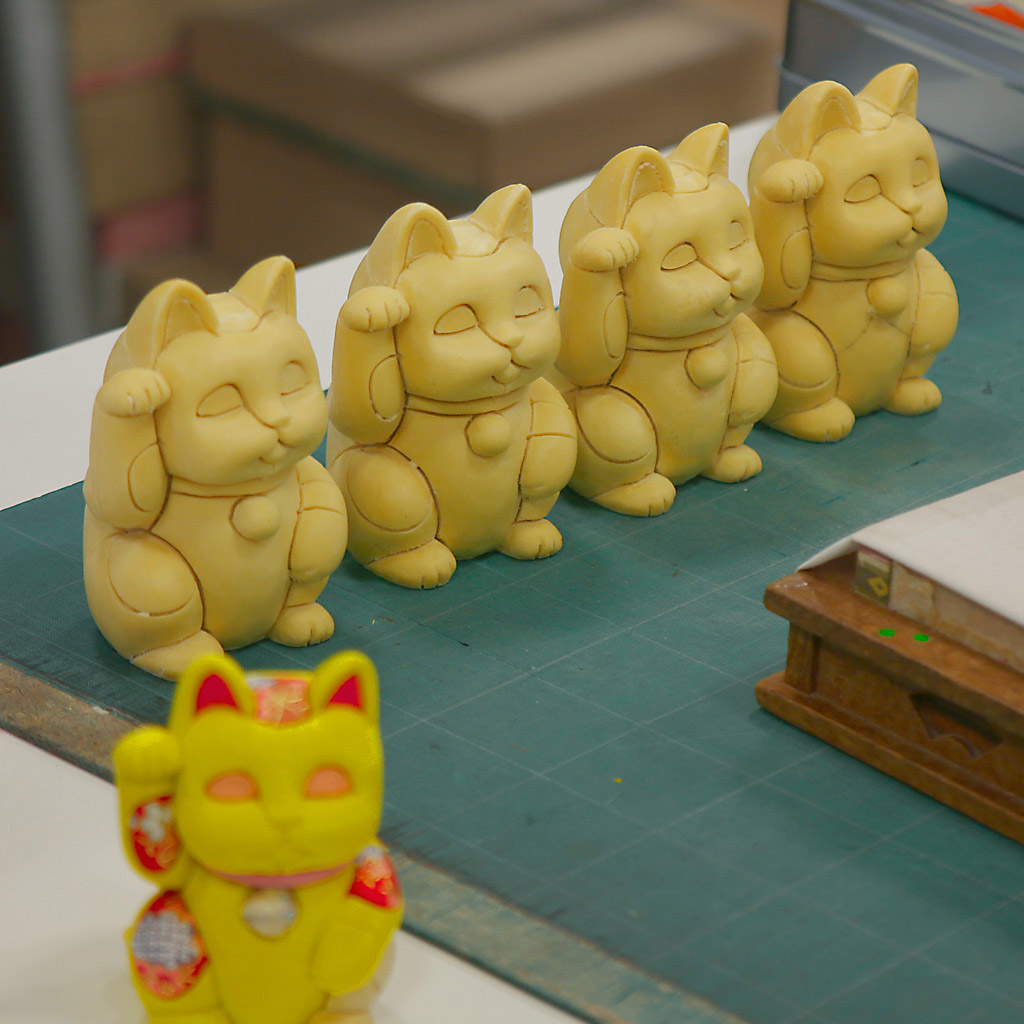 「招き猫が福を運んでくれたのかもしれません(笑)。雛人形の場合、木目込人形は工程別に20~30人の職人が関わるほど、手間暇かけて作られるもの。この招き猫をきっかけに、魅力を知ってもらえたらうれしいですね」。