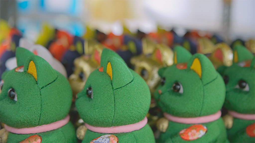 Edo Kimekomi-ningyo are designated as a Traditional Craft by the Minister of Economy, Trade and Industry. Toshimitsu Kakinuma and his older brother of Kakinuma Ningyo represent the next generation of dollmakers. They carry on the tradition passed down to them from their father, Kimekomi-ningyo dollmaker Toko Kakinuma, while developing new products and ideas for their craft. Currently the one to watch is their adorable maneki-neko. “The round, plump look of Kimekomi-ningyo was a perfect match for the beckoning cat. In addition to the Nishijin fabric (a traditional brocade produced in Kyoto used for kimono and other accessories) and silk that we usually use on dolls for seasonal festivals, we also use leather and enamel,” says Kakinuma. With natural stones for eyes and an aura of positive energy, these good luck cats were destined to be welcomed with open arms; they are currently also available in Europe. At the Ambiente trade show in Germany, they were selected as an Ambiente Trend 2016 product. “I think we have the cat to thank for all of this good fortune (laughs). Anywhere between 20 to 30 craftsmen are involved throughout the process for making the dolls for Girl’s Day. Hopefully these beckoning cats can serve as an introduction to the beauty of our tradition.”